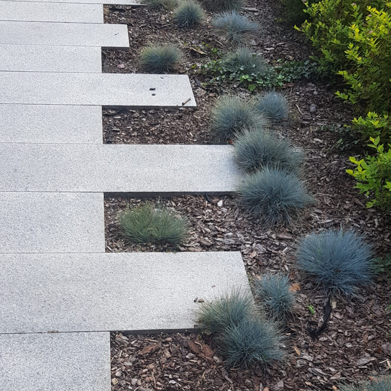Płyta wykonana jest z szarego granitu Bianco Sardo o wykończeniu płomieniowanym (szorstkim). Stanowi ona estetyczną i wielokrotnie trwalszą alternatywę dla betonowych płyt drogowych czy kostki betonowej. Doskonale sprawdza się na rynkach miejskich, placach manewrowych, strefach dostaw oraz luksusowych podjazdach, gdzie inwestor nie uznaje kompromisów w zakresie wytrzymałości.