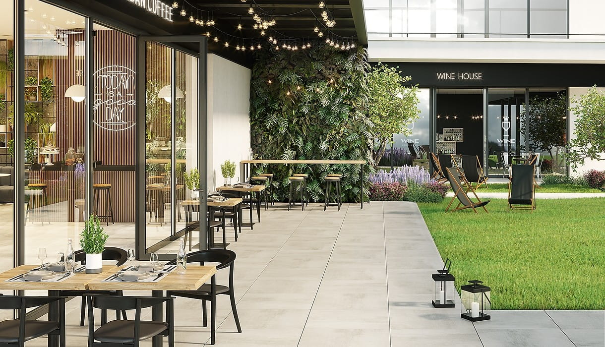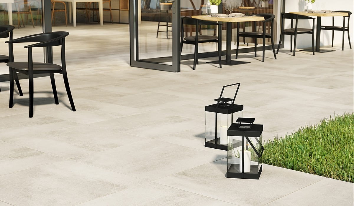 Stworzenie przytulnego patio z tymi płytkami to świetny pomysł – warto je ożywić za pomocą ozdobnych roślin w dużych donicach, a magiczną atmosferę zapewnią zawieszone kolorowe lampki. Grava 2.0 to doskonałe tło dla spotkań z przyjaciółmi na świeżym powietrzu.