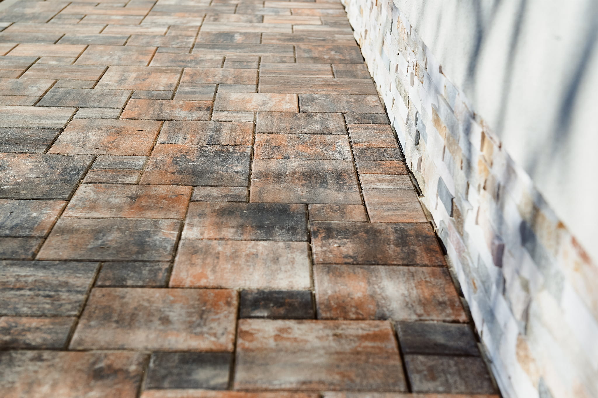 Elementy są do siebie dopasowane (wielokrotność 10 cm). Można je układać w pasy, w "jodełkę" lub w nieregularny wzór, wykorzystując wszystkie elementy z palety. Dzięki obecności małych kostek (10x10 i 20x10), łatwo wykańczać krawędzie.