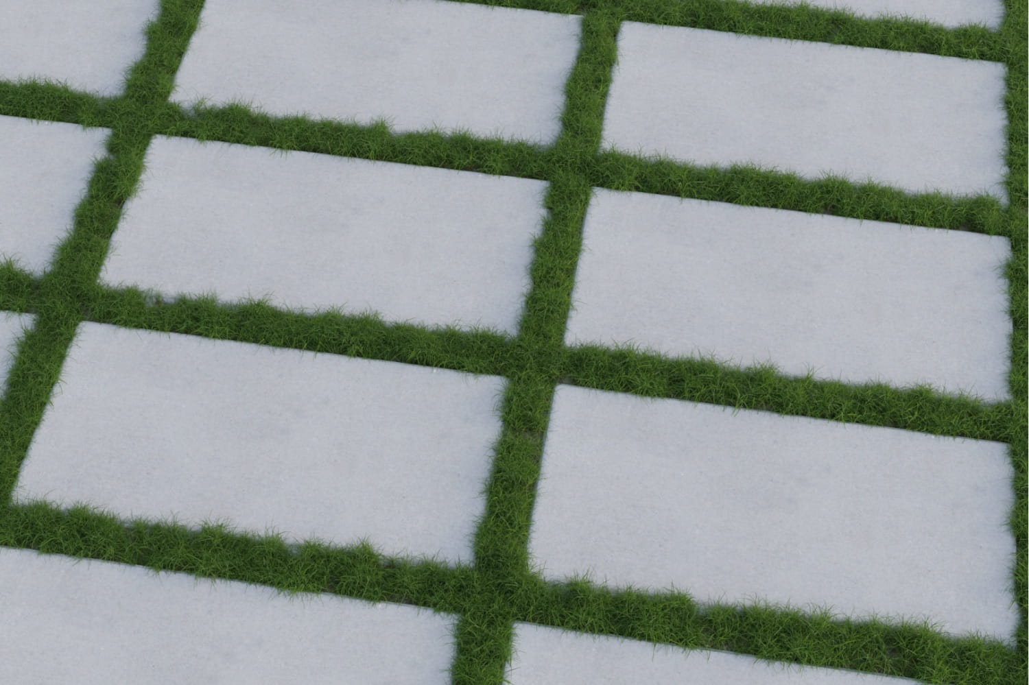 - System Eko-Dystansów: Specjalne wypustki gwarantują równe, szerokie odstępy między płytami, umożliwiając wegetację roślin lub infiltrację wody.