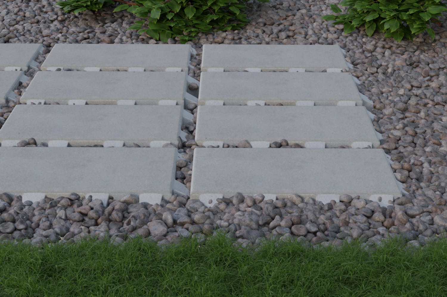 - Estetyka: Szary, surowy beton świetnie komponuje się z zielenią trawy lub bielą kamieni ozdobnych.