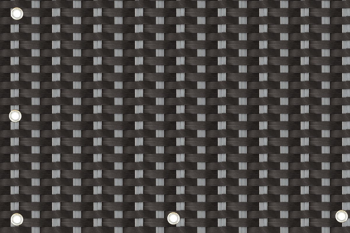 Mata osłonowa o kodzie RX112 w kolorze czarno-szarym to idealne rozwiązanie na balustrady o wysokości 100 cm. Produkt sprzedawany jest w systemie metrowym (1 sztuka = 100 cm długości), co pozwala na precyzyjne dopasowanie do wymiarów balkonu. Kolor RX112 to nowoczesny "mix" – przeplot włókien czarnych i ciemnoszarych. Taka struktura nie tylko prezentuje się elegancko i nowocześnie, ale jest też niezwykle funkcjonalna: na niejednolitej powierzchni kurz, pyłki czy osady po deszczu są niemal niewidoczne. Wykonana z technorattanu o gramaturze 750 g/m², mata skutecznie chroni przed wiatrem i wzrokiem sąsiadów, będąc inwestycją na lata.
