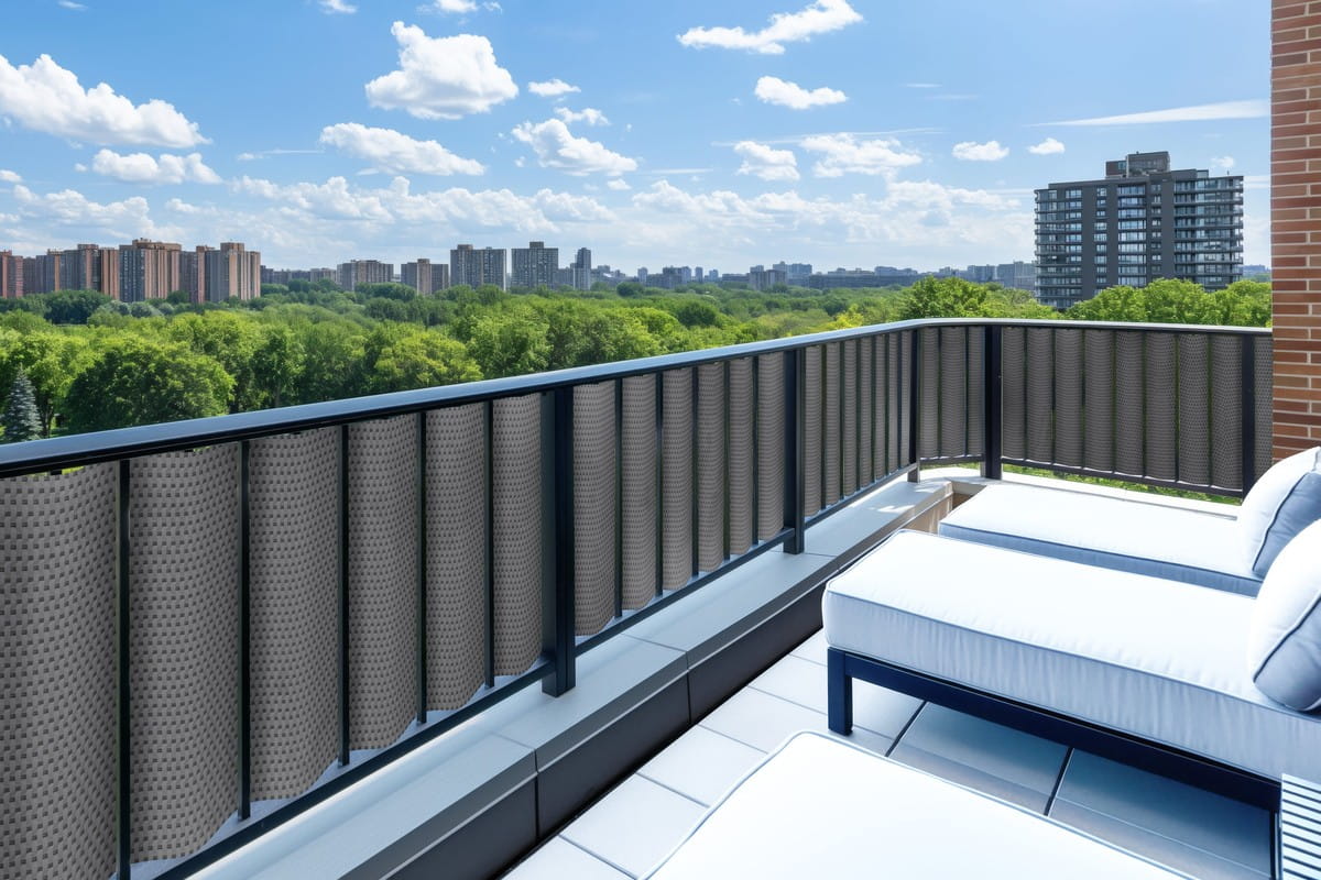 - Wysokość 90 cm: Wymiar skrojony pod standardowe balustrady balkonowe. Mata kończy się równo z poręczą, zapewniając schludny wygląd i oszczędność czasu przy montażu.