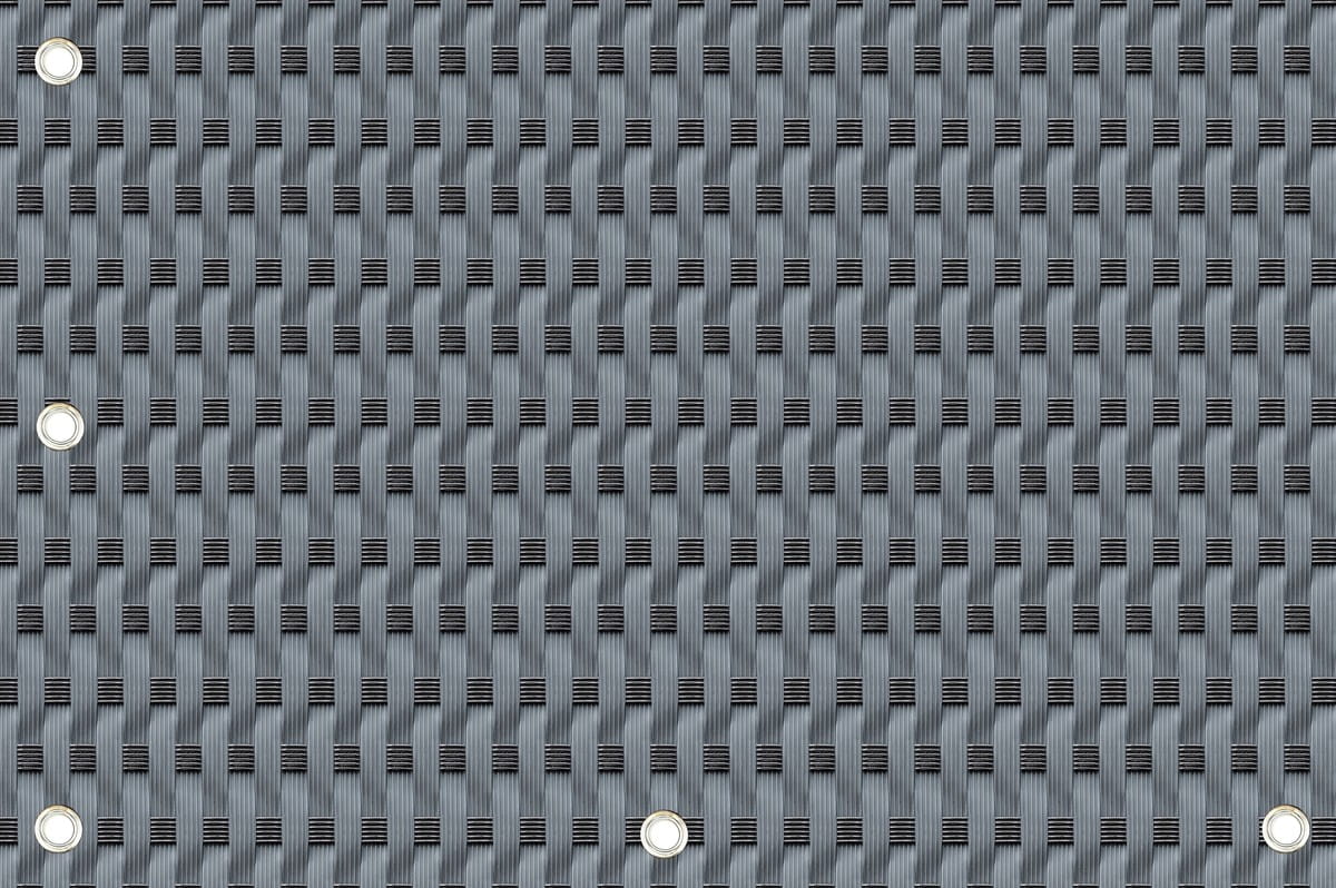To melanż (mix) pasków szarych i czarnych. Z bliska widać strukturę plecionki dwóch kolorów, natomiast z daleka mata wygląda jak ciemny, elegancki grafit.