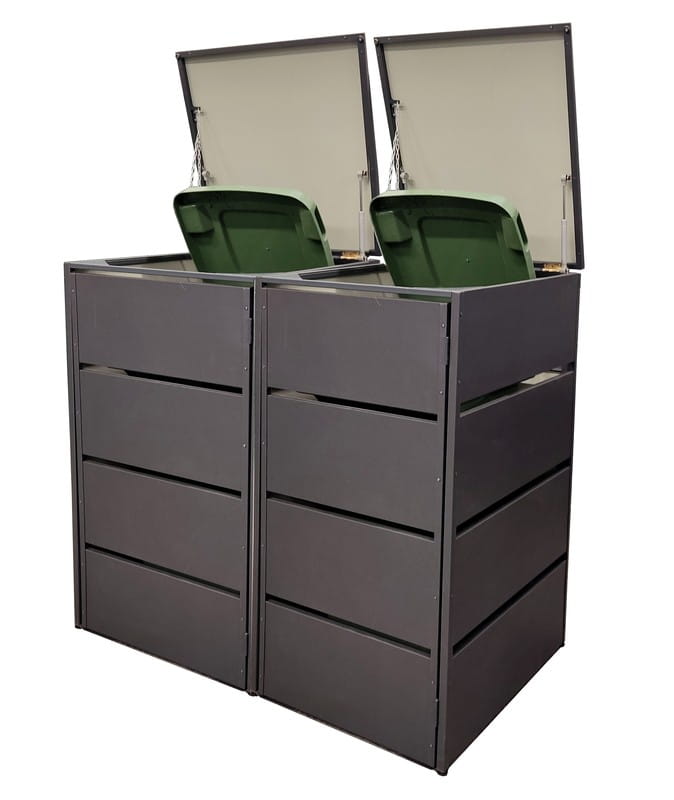 Tak, konstrukcja została zaprojektowana w taki sposób, aby swobodnie pomieścić zarówno standardowe pojemniki 120 litrów, jak i większe kubły 240 litrów, które są powszechnie stosowane przez firmy wywozowe.