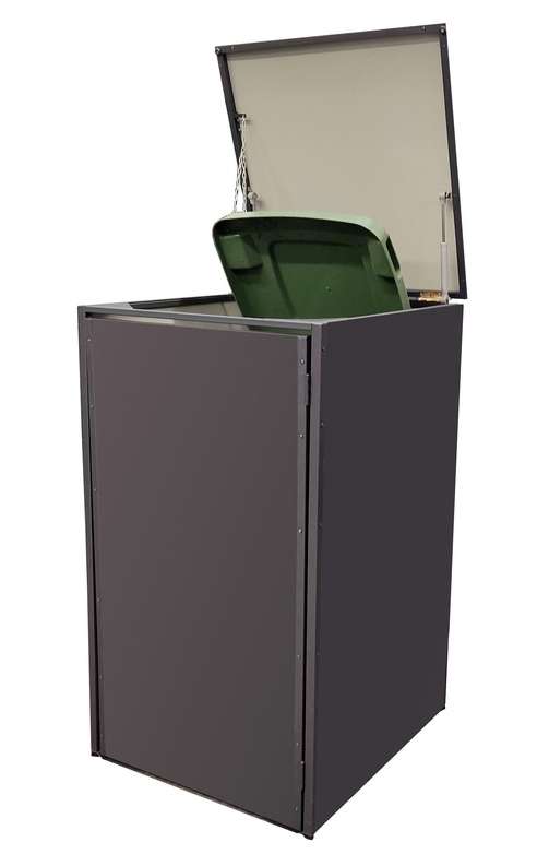 Ten model ma głębokość 57 cm, co jest idealne dla standardowych pojemników 120L (które mają ok. 55 cm głębokości). Pojemniki 240L są zazwyczaj głębsze (ok. 73 cm) i będą wystawać poza obrys zabudowy, uniemożliwiając zamknięcie drzwi. Dla kubłów 240L prosimy wybrać głębszy model zabudowy.