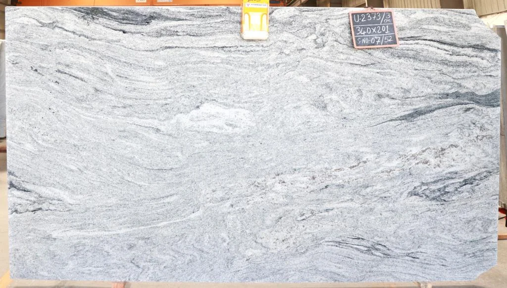 Szukasz materiału na blat kuchenny lub schody, który zachwyci gości niepowtarzalnym wzorem? Płyta granitowa Viscount White o grubości 3 cm to odpowiedź na potrzeby nowoczesnych wnętrz. Ten indyjski granit słynie z niezwykłego podobieństwa do marmuru – na białym tle przepływają dynamiczne, szaro-czarne fale. Jednak w przeciwieństwie do delikatnego marmuru, Viscount White jest twardy, odporny na zarysowania i kwasy (np. sok z cytryny), co czyni go idealnym kandydatem do kuchni.