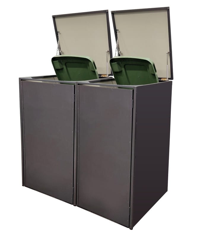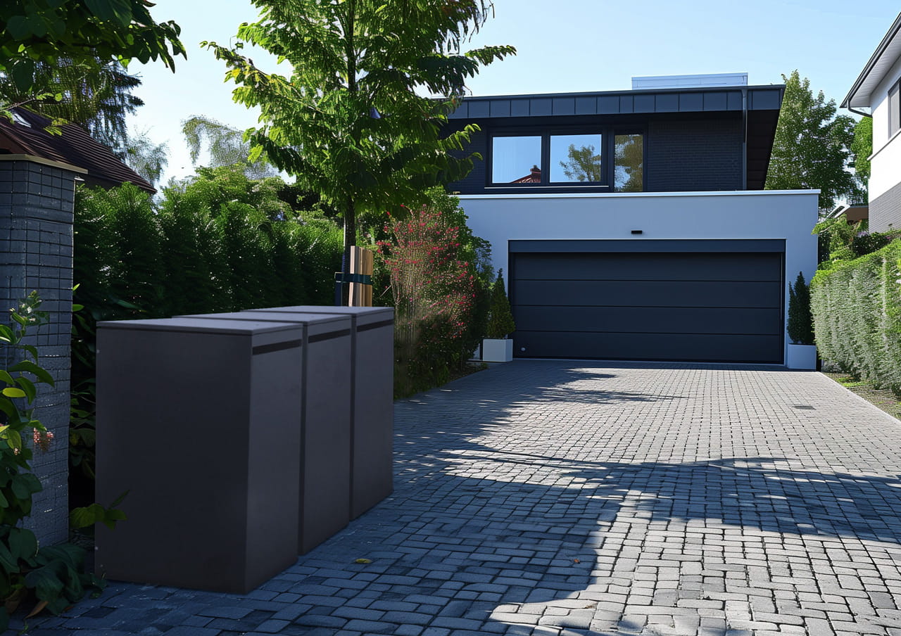 - Kompaktowy design: Idealna do ukrycia jednego pojemnika 120L, nie zajmuje wiele miejsca i świetnie sprawdza się w małych wnękach lub przy bramie.
