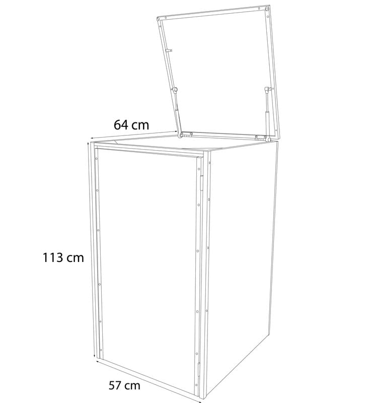 Ten model ma głębokość 57 cm, co jest idealne dla standardowych pojemników 120L. Pojemniki 240L są zazwyczaj głębsze (ok. 73 cm) i nie zmieszczą się w tej obudowie (drzwi się nie zamkną). Dla kubłów 240L należy wybrać model o większej głębokości.
